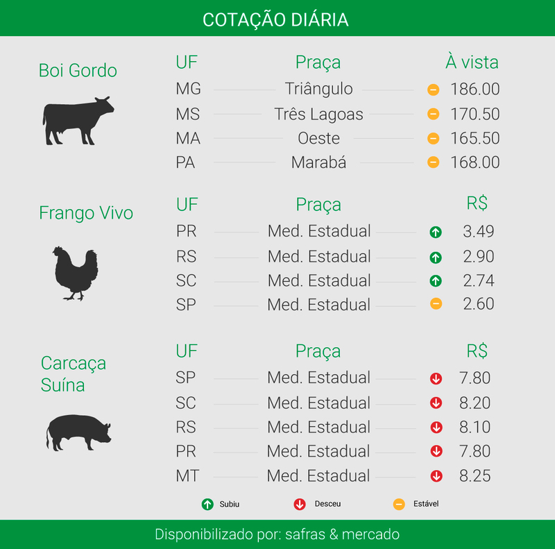 variação e o produto é negociado a R$ 7,73. Em Minas Gerais, o suíno