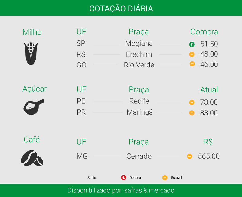 vista é R$ 43,50. Os valores são do Canal Rural e Cepea.